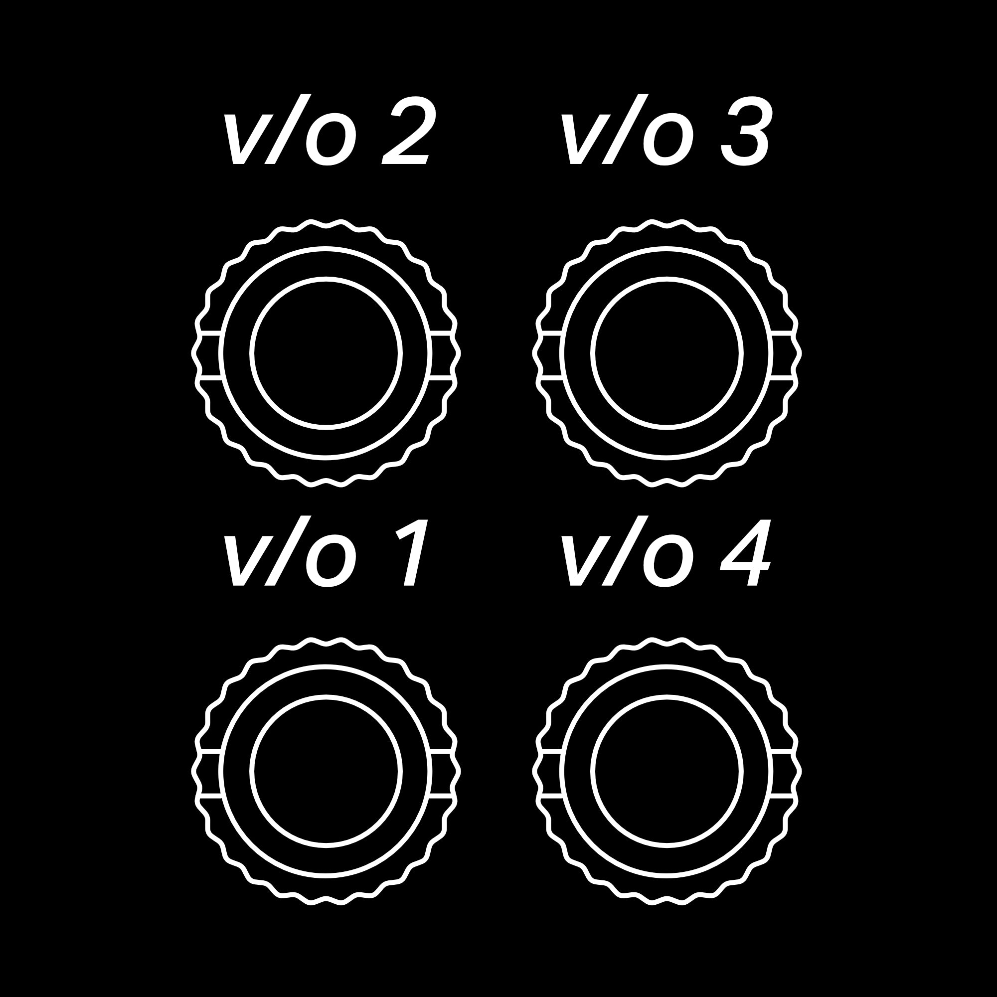 Ripsaw contains 4 voices that can each be individually controlled with 1 volt per octave pitch CV