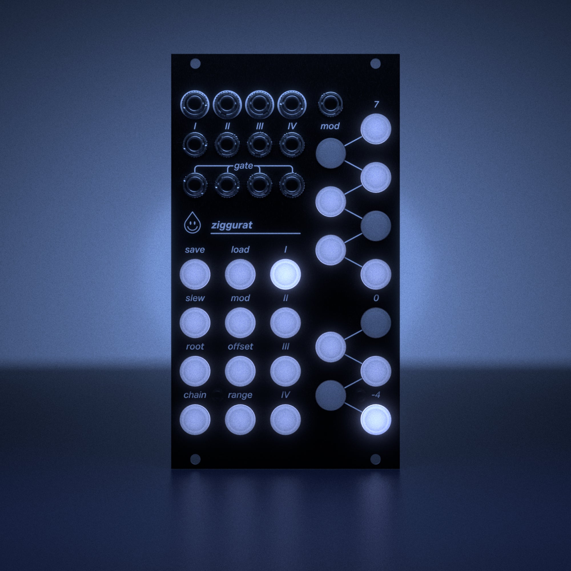 Ziggurat is a 4 channel quantizer designed to turn any combination of control voltage and gate signals into inspiring and unexpected melodies. Ziggurat provides a fresh way to explore harmonic relationships - wandering through different combinations of note masks, input signals, ranges and offsets until the music catches your ear - at which point all settings on the module can be easily saved for later reference